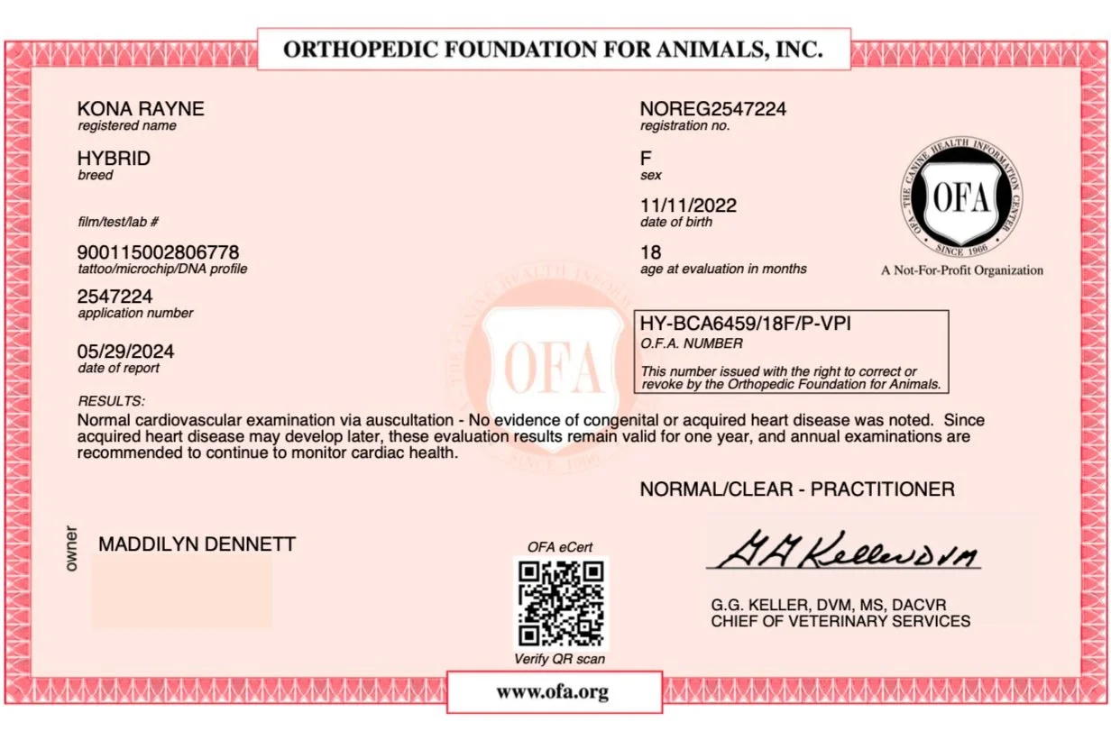 Kona Rayne Embark DNA Testing:EE kyky atat bb SSi mm FI LhLh CC CTFully Clear Health Panel Kona Throughout the Years
